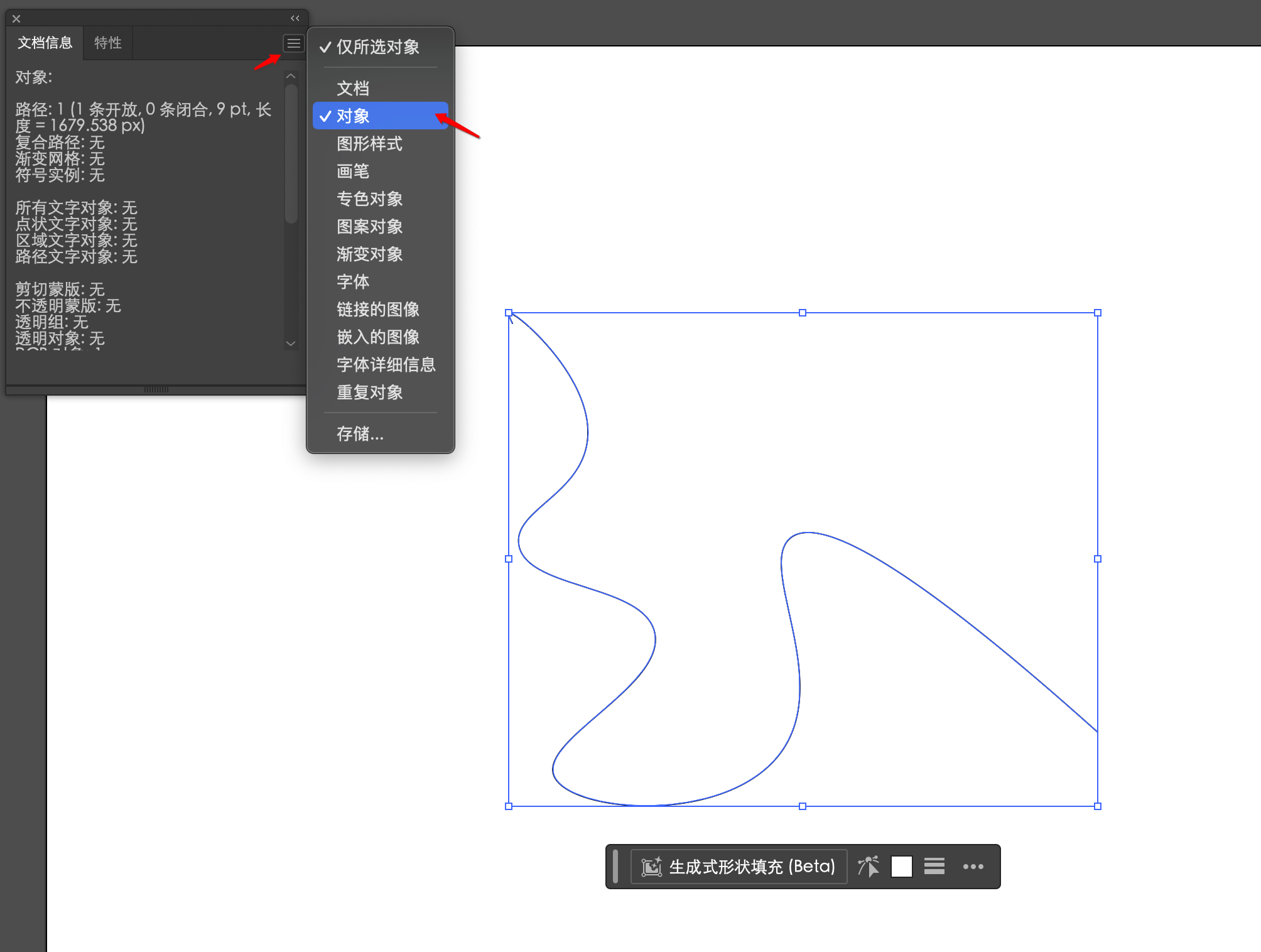 ## 1、轨迹长度怎么看 选中绘制的路径,点击【窗口】-【文档信息】,右侧选项调整为【对象】,即可看到轨迹的长度  ## 2、轨迹绘制时注意 需要重新建一个和原图一样大的尺寸的画板,然后置入图片 使用弯曲工具  颜色透明  ## 3、轨迹SVG代码导出 在Ai软件中绘制完轨迹后,选中轨迹,然后选另存为  存储格式选SVG  图像位置选 链接、CSS属性选演示稿属性  然后点击SVG代码,会有文本框弹出,  复制d=后面“”里面的字符  ## 4、图片底部出现空白的  因为容器有高度1920 需要在所有内容设置好,复制代码时,修改代码中的1920 ,改为图片的高度 ## 5、音频有时候没有播放 热区范围过大,需要缩小热区范围,防止误触 ## 6、其他 遮罩图片,需要把路径元素挖空,